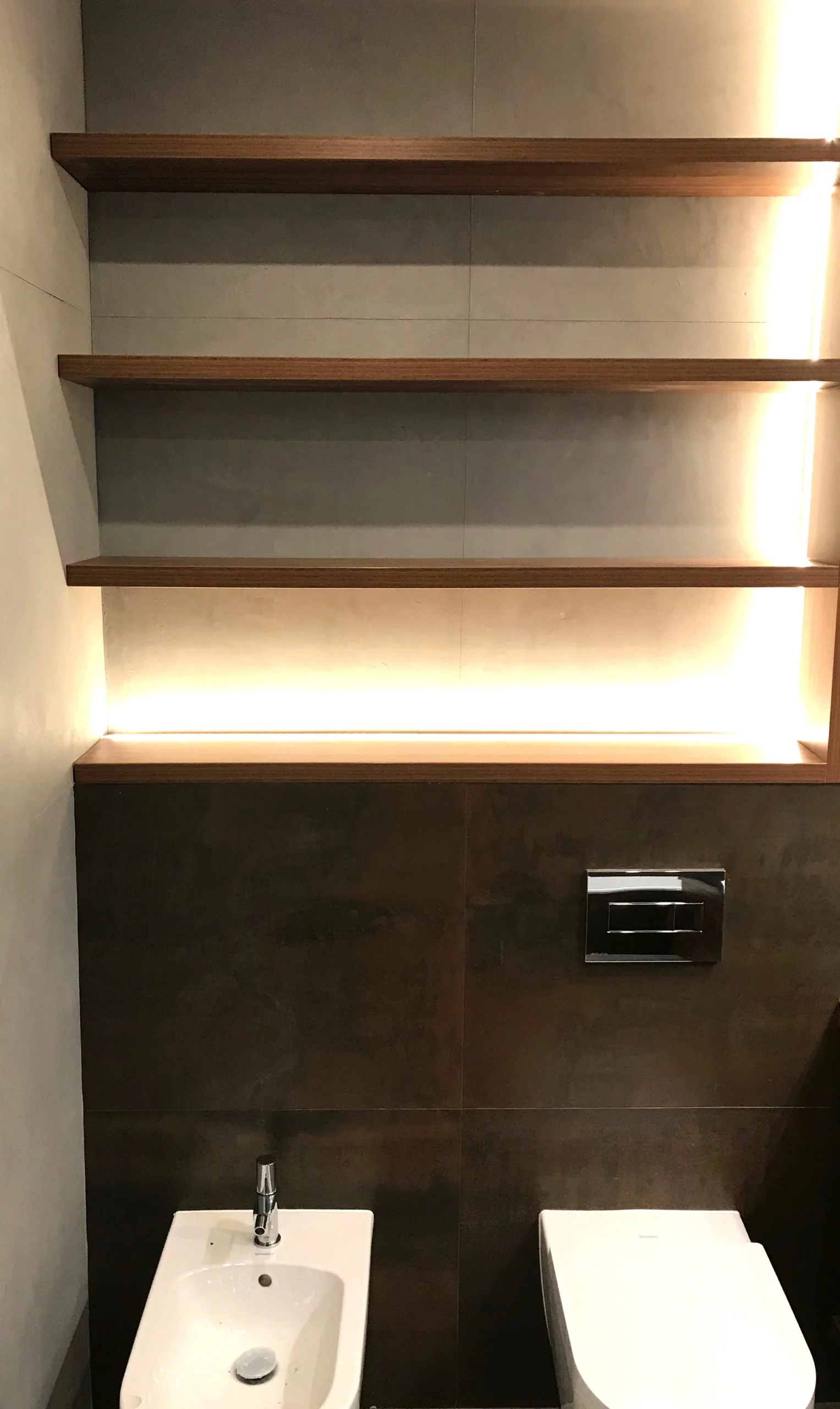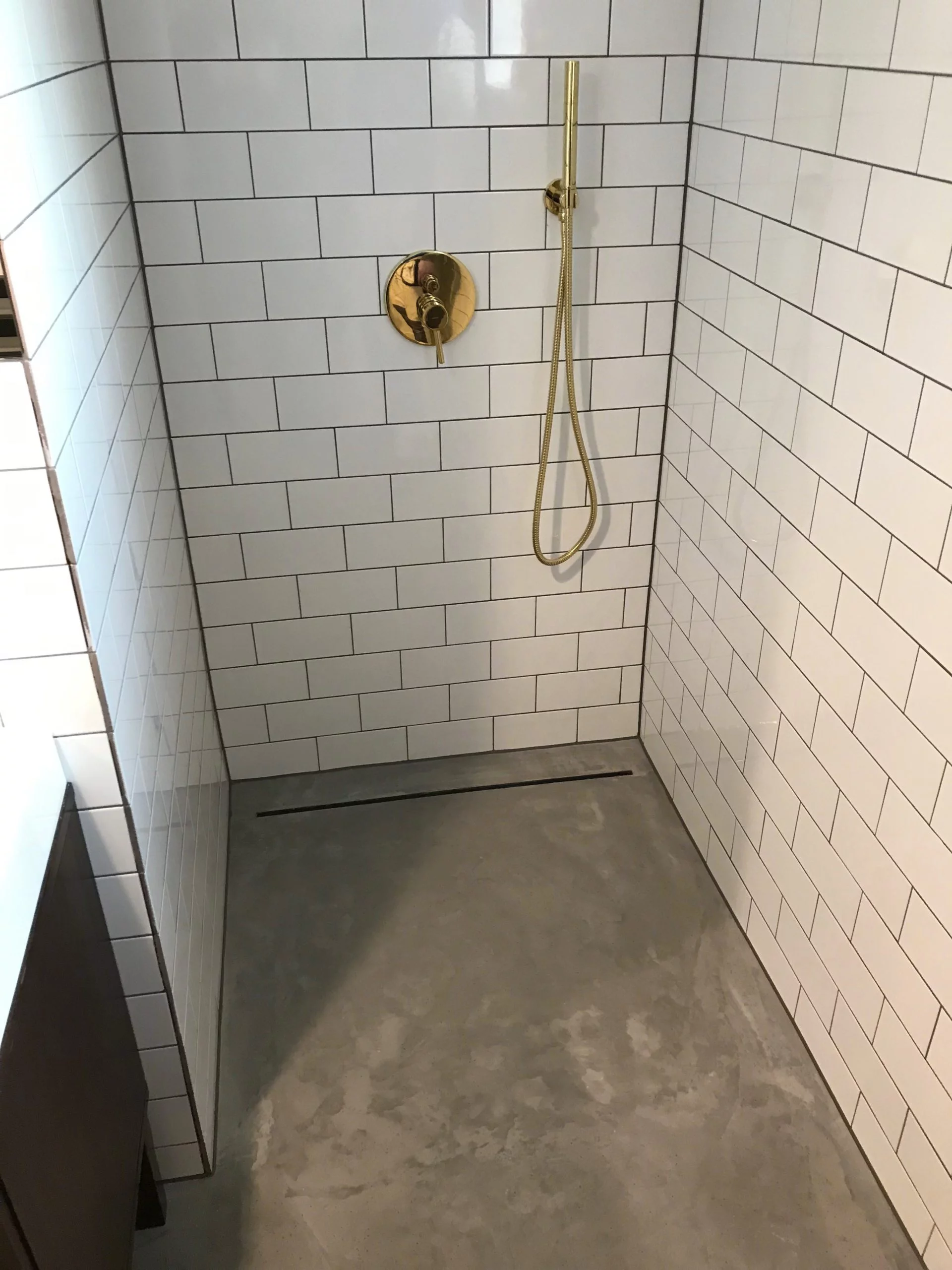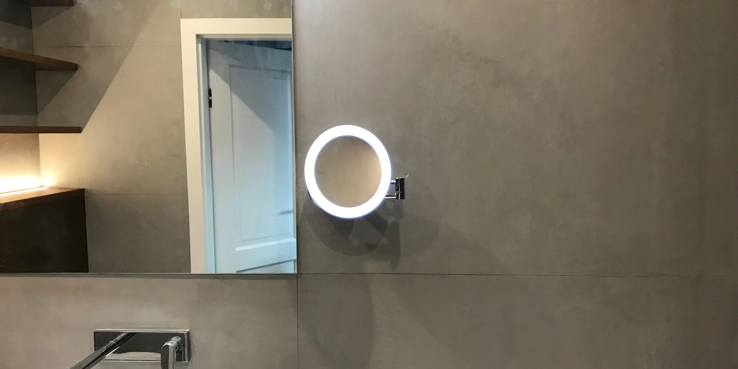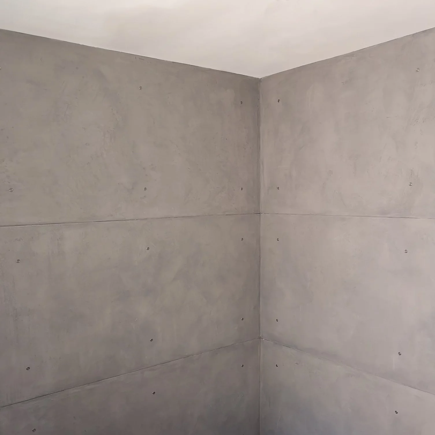 szary mikrocement jako beton architektoniczny na ścianie